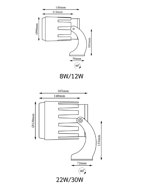 Available in 2 sizes and 4 wattages, the heads can tilted to highlight the desired area and allow for creativity in outdoor lighting.